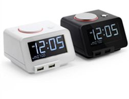The ChargeTime hotel alarm clock immediately advertises itself to guests as a USB charger. With two USB ports highlighted on the front, guests will recognize the amenity and appreciate not having to do the familiar crawl under the nightstand in search of an outlet. A true hospitality alarm clock, the ChargeTime features a dimmable display, single-set alarm, small footprint, and automatic Daylight Savings time adjustment for any budget.