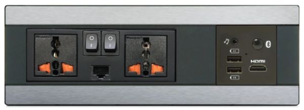 Motorized Mediahub is a new type of flipping electric socket. It is mainly used on the electrical supporting equipment products in the high-grade office equipment, hotel and other high-grade multimedia places. It can match the connecting of power socket(Universal standard, US standard, EU standard, German standard, UK standard, Denmark standard and South Africa standard), Network socket, phone socket, VGA, HDMI, USB, Double Audio Frequency, 3.5 Audio, Video, S-Video, Microphone and other usual desktop socket connecting.